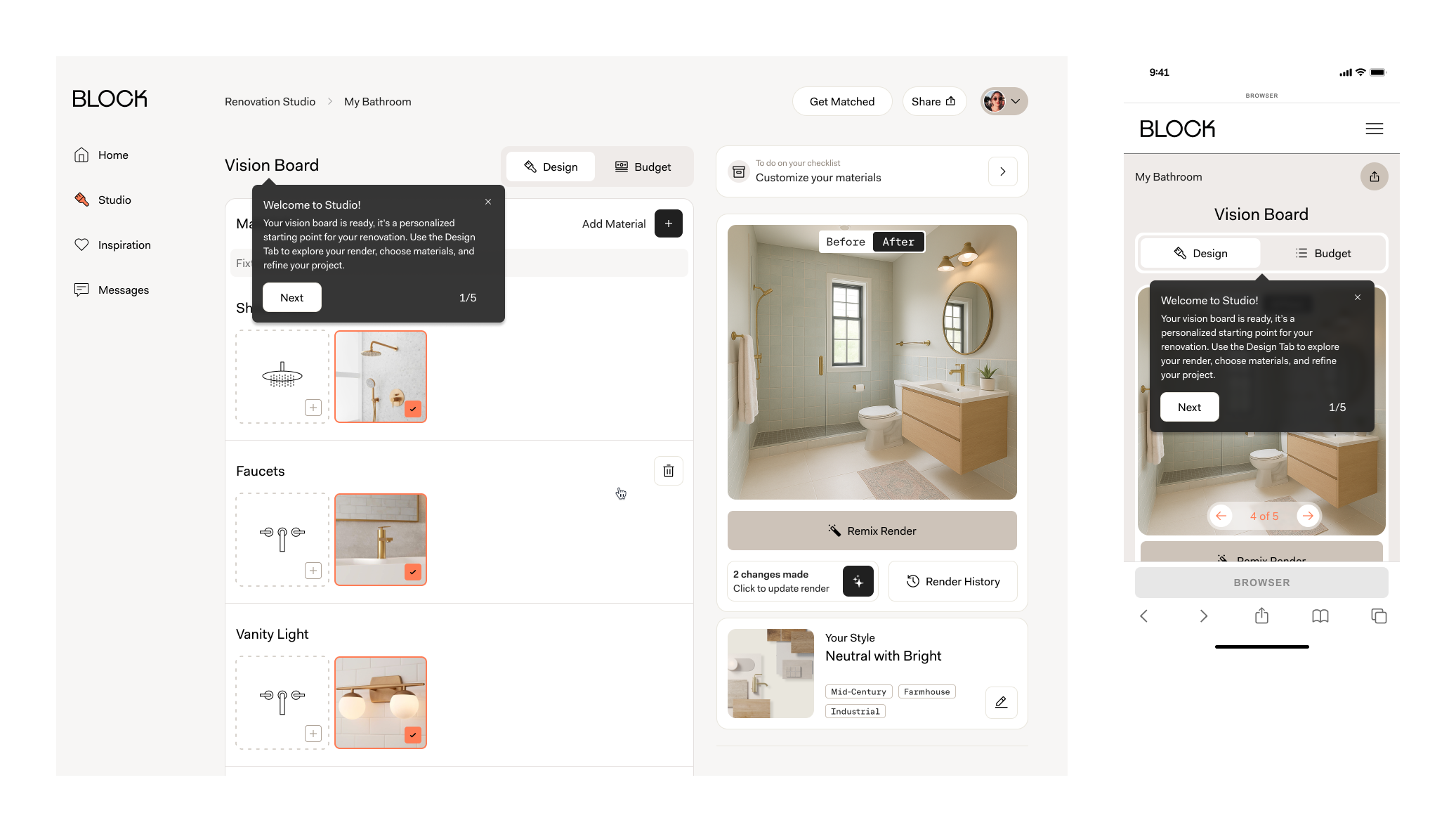 Impact → Studio generated revenue from renovation projects originating in the planning experience and established a scalable top of funnel acquisition path. It reduced friction between inspiration and contractor engagement and became a permanent part of Block’s platform strategy.